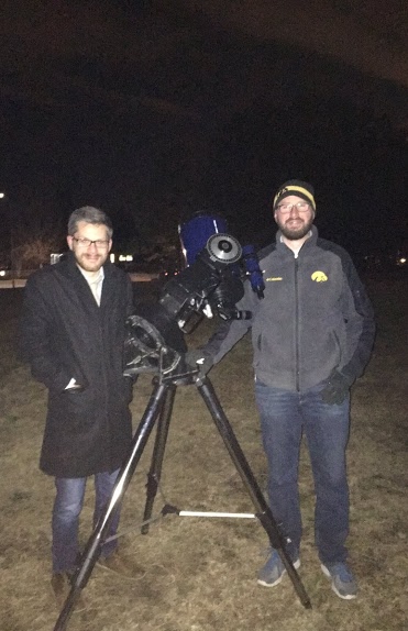 A central belief of my teaching philosophy is that everyone can learn physics, even those who do not seek out the formal settings of a college classroom. As part of my philosophy that knowledge and science should be shared with all, make an active effort to engage the public. I co-run the physics department’s astronomy outreach program, which provides telescopes for viewing events at local schools and parks. Additionally, I give talks to the community when able. I specialize in making high-level content accessible and interesting for the general public.